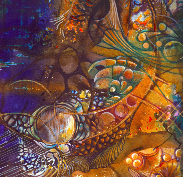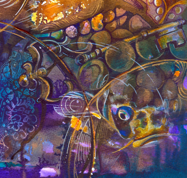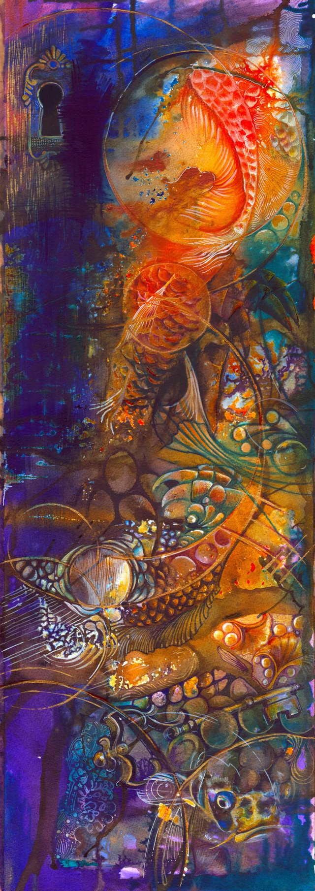 This high quality print is of my original painting 'Euphoria - The Key is in the Water' - it is printed on a softly textured matt paper, which gives the surface a delicate, tactile quality and the look and feel of an etching. It will be sent direct to you rolled in a tube - the overall print is 50 cm x 25, the image is approximately 46 cm x 21 cm. If you want to frame the piece, look for panoramic photo frames which are easily available online - price includes postage to the UK.